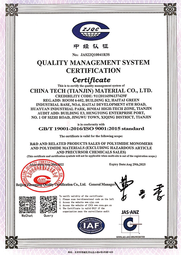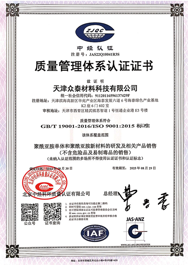 天津眾泰材料科技有限公司(以下簡稱“眾泰”),是一家“以先進功能性聚酰亞胺單體研發(fā)生產為核心,致力于推動全球聚酰亞胺材料產業(yè)發(fā)展”為使命的創(chuàng)新型高新技術企業(yè)。眾泰研制的聚酰亞胺單體目前已廣泛應用于無色透明柔性聚酰亞胺薄膜、柔性顯示材料、5G新材料等諸多高科技領域產品的生產。